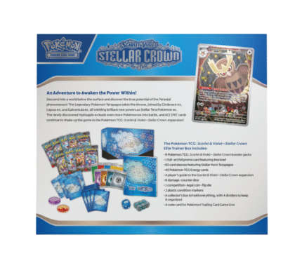 De Pokemon Stellar Crown – Elite Trainer Box bevat het volgende: