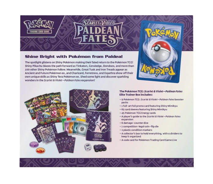 De Pokemon Paldean Fates Elite Trainer Box bevat het volgende: