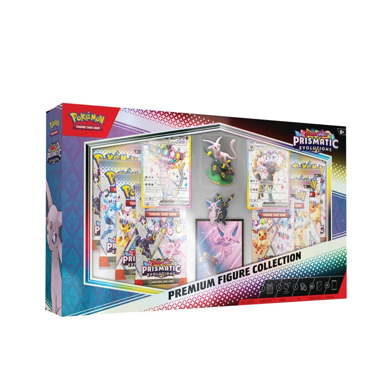 De Pokemon Prismatic Evolutions Premium Figure Collection bevat het volgende: